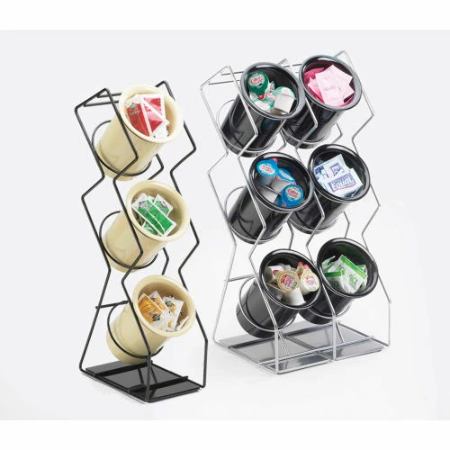Display and store your flatware with this stylish iron cylinder display. It features a unique black or silver frame with your choice of various colored cylinders and can be transformed to match your own style.