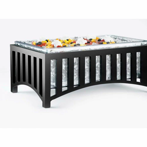 This ice housing is perfect for catering, parties, and any buffet. It is perfect for keeping beverages and/or food chilled in ice. This mission styled housing creates a fresh and clean look to any food service display. Product Features: Removable bin for easy cleaning. Perfect size to display beverages or small chilled items. Pan Included, Will also accommodate cold bowls.