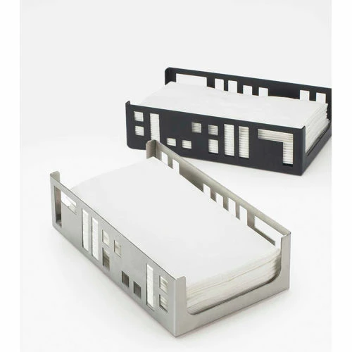 This napkin holder is a great way to display napkins with a modern twist. It goes perfectly on any buffet table for a party or catering event. Product Features: Holds 4X8 napkins, Organizes and separates napkins. Dimensions: 9-1/4W x 5-1/4D x 2-1/2H.