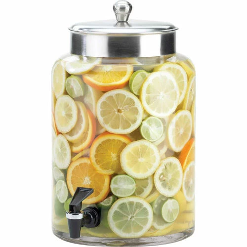 | Description | Cal-Mil 1748-2 2 Gallon Round Glass Beverage Dispenser with Stainless Steel Top, |