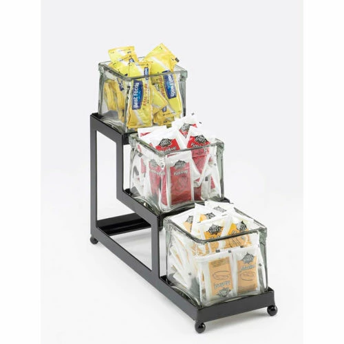 This 3 step jar display is perfect for any party, buffet, or catering event. With the three glass jars, it creates organization while adding elevation to create space. Product Features: Jars Included and are removable for cleaning. Easy for transportation. Durable and modern.