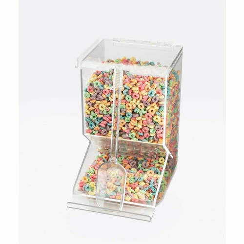 This cereal dispenser not only offers 450 cubic inch capacity, but it also has a stack-able feature that allows you to display multiple cereals while adding dimension to your buffet. This item works great for buffets or continental breakfasts.