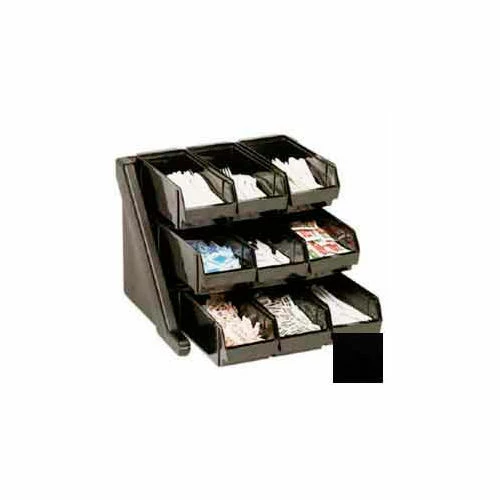 Made of solid polyethylene for long lasting durability. Can be wall-mounted or placed on flat surface. Holds up to 10 lbs. Color is Black. Number of bins is 9. Measures 20-1/8″ W x 17-1/4″ D x 14-1/4″ H.