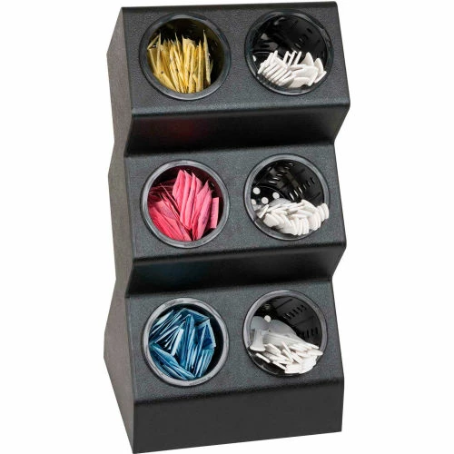Flatware organizer, countertop, (6) compartments, 21-1/8″ H x 10-1/2″ W x 9-1/4″ D, polystyrene, black.