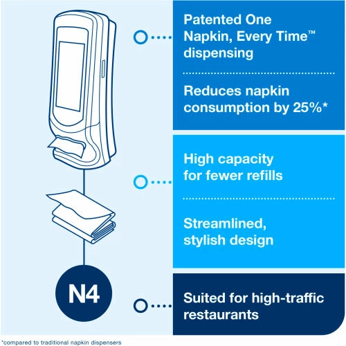 - AD-A-Glance® customizable display engages guests Compatible with Tork N4 Xpressnap® Dispenser Napkins